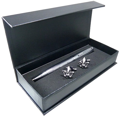 No: AKC003B-E01 SHINY CHROME BALL PEN & CUFFLINKS IN A MAGNET PAPER BOX No: AKC311B-Y18 CARBON FIBER BALL PEN & CUFFLINKS IN A MAGNET PAPER BOX No: AKC003KB-G18 SHINY CHROME/ BLACK BALL PEN & CUFFLINKS W/ CRYSTALS DECOR IN A MAGNET PAPER BOX No: AKG002B-014 SHINY GOLD BALL PEN & CUFFLINKS W/ CRYSTALS DECOR IN A MAGNET PAPER BOX No: LFC003KB-027 SHINY CHROME/ BLACK BALL PEN & CUFFLINKS W/ CRYSTALS DECOR IN A MAGNET PAPER BOX No: LFC103B-E02 MAT CHROME BALL PEN & CUFFLINKS IN A MAGNET PAPER BOX No: LFC003B-034S SHINY CHROME BALL PEN & FLOWER-SHAPED CUFFLINKS IN A MAGNET PAPER BOX No: LFC011B-G23 SHINY BLACK BALL PEN & CUFFLINKS W/ BLACK GLASSES DECOR IN A MAGNET PAPER BOX
